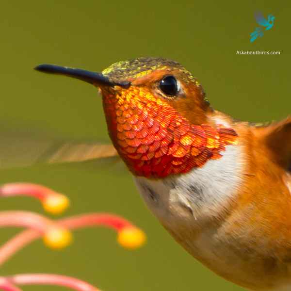 Appearance: Male Allen’s Hummingbirds are noted for their iridescent orange-red throat, or gorget, and bronze-green upperparts. Their tail feathers are typically rufous with black tips. Females, on the other hand, display more subdued coloration with greenish upperparts and whitish underparts, with speckles on the throat.